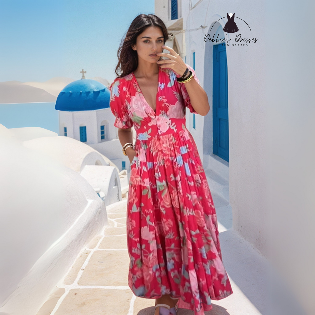 Introducing the Floriana Vibrant Floral Dress, a stunning statement piece designed to make you shine. With its bold floral pattern and flowing silhouette, this dress is perfect for embracing color and femininity effortlessly.